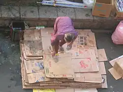Le ramassage ne s'arrête pas là. Les déchets sont ensuite vendus à des intermédiaires qui s'occupent soit de les revendre directement, soit de les transformer : nettoyage, ajout de valeur, séparation des matériaux... à la suite de quoi ils sont revendus. La récupération informelle participe ainsi au recyclage et par là même au système de gestion des déchets. Le volume de déchets récupérés est loin d'être négligeable : sur l'ensemble de la Roumanie, 1 à 2 % des déchets recyclables sont récupérés informellement, les déchets recyclables formant 36 % du total. À Bangalore, 15 % des déchets municipaux sont récupérés ainsi chaque jour ; au Caire, c'est entre 30 et 40 % de tous les déchets qui sont récupérés, soit 900 tonnes chaque jour. La gestion des déchets pouvant représenter jusqu'à 30 % du budget municipal comme à Karachi[27], la récupération informelle permet aussi à la ville de réduire ses coûts en la matière.