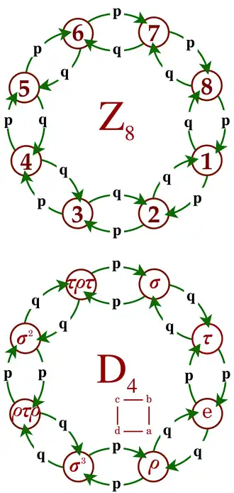 Dans cet exemple, et où est la symétrie du carré par rapport à la diagonale (a,c), et où est la symétrie du carré par rapport à son axe horizontal; est la rotation d'angle La probabilité est une probabilité stationnaire, donc chaque état est récurrent positif, en vertu du 2e critère.