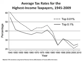 Les lois EGTRRA (en) (2001) et JGTRRA (en) (2003) ont significativement réduit les taux marginaux de l'impôt sur le revenu pour pratiquement tous les contribuables américains.