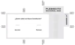 - 1 2 (es) « Cómo se vota — Plebiscito Nacional + », sur plebiscitonacional2020.cl, ServelChile (consulté le ).