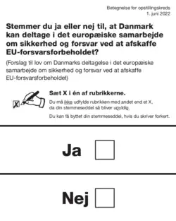 - ↑ (da) « Folkeafstemning om afskaffelse af forsvarsforbeholdet 2022 », sur valg.im.dk (consulté le ).