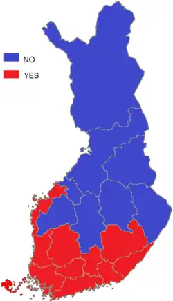| Ostrobotnie du Sud | 43,945 | 38.94 | 68,910 | 61.06 | 417 | 113,272 | 150,585 | 75.22 |