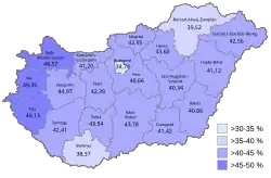 Le « non » l'emporte avec 3 362 224 voix contre 56 163. Les opposants avaient appelé au boycott ou au vote nul. Il y a eu 224 668 bulletins nuls. 41,32 % des électeurs s'étant exprimés[1],[2]. Le référendum n'a pas atteint les 50 % d'électeurs ayant effectué un vote valide nécessaires pour être considéré « valide » par la Constitution hongroise de 2012. Le Premier ministre Viktor Orbán considère néanmoins qu'il s'agit d'un plébiscite politique, plus large que pour l'adhésion à l'UE en 2003[3],[4].