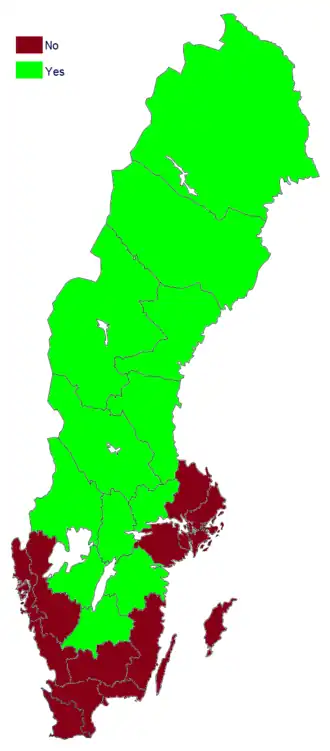 Le « non » l'emporta avec près de 51 % des suffrages exprimés[1]. Les résultats furent diamétralement opposés entre hommes et femmes, les premiers votant à près de 60 % contre, tandis que les secondes approuvaient à près de 60 %, ainsi qu'entre les différentes régions du pays, le nord votant majoritairement pour, à l'inverse du sud[2].