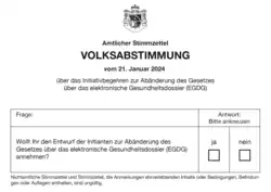 - ↑ (de) « Ergebnis der Volksabstimmung vom 21. Januar 2024 über das Initiativbegehren zur Abänderung des Gesetzes über das elektronische Gesundheitsdossier (EGDG) », sur llv.li, (consulté le ).