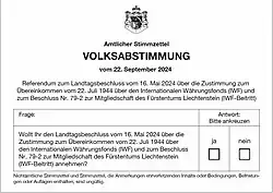 - ↑ (de) « Ergebnis der Volksabstimmung vom 22. September 2024 über den Landtagsbeschluss vom 16. Mai 2024 über die Zustimmung zum Übereinkommen vom 22. Juli 1944 über den Internationalen Währungsfonds (IWF) und zum Beschluss Nr. 79-2 zur Mitgliedschaft des Fürstentums Liechtenstein (IWF-Beitritt) », sur llv.li, (consulté le ).