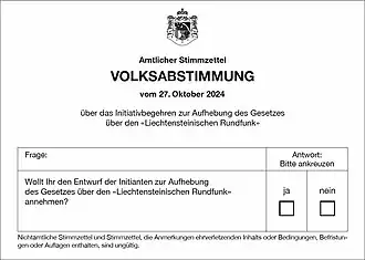 - ↑ (de) « Abstimmung über die Aufhebung des Gesetzes über den Liechtensteinischen Rundfunk am 27. Oktober 2024 », sur www.liv.li, (consulté le )