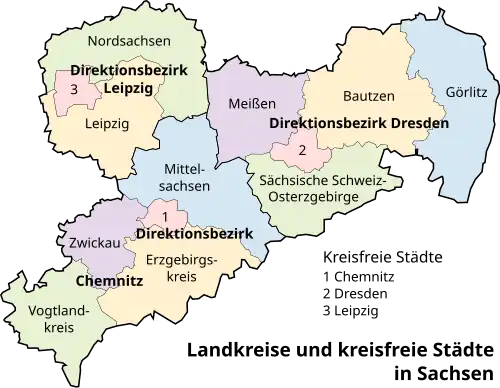 La Saxe était divisée en 22 arrondissements et 7 villes-arrondissements :