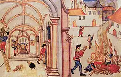- ↑ (de) Dölf Wild, Urs Jäggin, Felix Wyss, « Die Zürcher Predigerkirche – Wichtige Etappen der Baugeschichte. Auf dem Murerplan beschönigt? – Untersuchungen an der Westfassade der Predigerkirche. »(Archive.org • Wikiwix • Archive.is • Google • Que faire ?), Amt für Städtebau der Stadt Zürich, (consulté le ).
