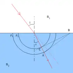 On a jusqu'ici considéré des milieux homogènes et isotropes, dans lesquels la vitesse de la lumière était la même partout et dans toutes les directions. Mais il existe des milieux dans lesquels la vitesse de la lumière, donc l'indice de réfraction, varie de manière continue, par exemple l'air.