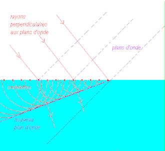Ce changement de célérité est donc précisément la cause du changement de direction de propagation d'une onde plane comme l'explique le principe de Huygens évoqué ci-dessus.