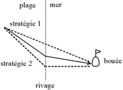 La trajectoire la plus rapide pour joindre un point de la plage à une bouée dans l'eau suit la loi de Snell-Descartes.