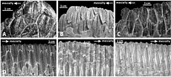 Wiliams, Barrett et Purnell ont mené leur étude sur les mâchoires d'un Edmontosaurus, un hadrosaure qui vivait il y a entre 68 et 66 millions d'années dans ce qui est aujourd'hui les États-Unis et le Canada. La mâchoire d'Edmontosaurus utilisée dans cette étude a été collectée dans des roches du Crétacé supérieur trouvées aux États-Unis[26],[27]. Ses dents individuelles comportaient plusieurs centaines de rayures microscopiques, qui avaient été préservées intactes lors de la fossilisation. Les chercheurs ont soigneusement nettoyé les mâchoires, les ont moulées et les ont enduites d'or pour faire une réplique détaillée de la surface de la dent. Ensuite, ils ont utilisé un microscope électronique à balayage pour obtenir un énorme grossissement des rayures à étudier, et ils ont effectué une analyse statistique en trois dimensions de leur direction.