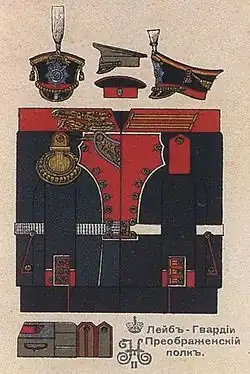 Dans les années 1695-1696, il participe à la campagne d'Azov[3]. En 1698, le régiment Préobrajensky se compose de quatre bataillons, auxquels il faut ajouter deux compagnies militaires distinctes composées de bombardiers (soldats en service sur les mortiers et les obusiers) et de grenadiers. Le , il prend le nom de régiment de la Garde Préobrajensky. Un autre régiment, également créé en 1683 pour les jeux guerriers du jeune Pierre Alexeïevitch, reçoit le nom de régiment de la Garde Sémionovsky : il doit son nom au petit village de Semionovskoïe, situé près de Moscou, où il est initialement stationné. En 1723, ce régiment est cantonné à Saint-Pétersbourg[4]. En 1706, Pierre Ier prend le grade de colonel du régiment Préobrajensky. En 1741 c'est à la tête d'une petite troupe du régiment que la future impératrice Élisabeth, fomente un coup d'État pacifique qui la propulse sur le trône de Russie[5]. En 1796, les bataillons du régiment sont nommés selon les patronymes de leurs chefs : 1er bataillon de Sa Majesté, 2e bataillon lieutenant-général Tatichev, 3e bataillon feld-maréchal Souvorov, bataillon de grenadiers major-général Araktcheïev. Le régiment Préobrajensky s'est illustré au cours de plusieurs guerres tout au long du XVIIIe siècle :