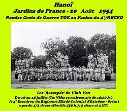 Au cours de la seconde Bataille de Vinh Yen, le 4° Escadron aux Ordres du Capitaine Hilliquin (Colonel Commandant le RICM en 1972, Adjoint du Général Siard à la 5° BB en 1975, DCD comme Général 2° section) est envoyé en renfort pour dégager la garnison encerclée. Du 10 au , de durs combats tenteront de limiter la pression du Vietminh sur les limites Ouest du Delta du Fleuve Rouge, notamment le au goulet de Quay Khang ; l'ennemi (vraisemblablement informé des résultats de Genève) décrochera le au soir, se repliant vers les hauteurs du Nord-Est. L'Escadron aura perdu plusieurs chars et Half-Tacks et près de 50 % de ses effectifs ; son fanion se verra décerner la Fourragère avec Croix de guerre des Théâtres d'opérations extérieurs par le Général René Cogny le aux Jardins de France à Hanoi (Photos ci-dessous).