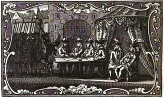 - ↑ J.-L. VIAL, "Liste ou établissemens de tous les Corps qui composent les 20.000 hommes dont la Reine de Grande Bretagne et les États Généraux sont convenus d'augmenter leurs troupes en 1703".