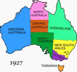 George Pearce, Ministre de l'Accueil et des Territoires (en) du Gouvernement fédéral dans les années 1920, estima que le Territoire du Nord était trop vaste pour être bien gouverné et un territoire appelé Australie centrale exista donc pendant un court laps de temps.
