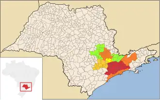 - les aires métropolitaines de Baixada Santista (au Sud), Campinas (au Nord), São José dos Campos (à l'Est),