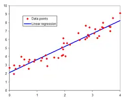 Parmi les modèles de régression linéaire, le plus simple est l'ajustement affine. Celui-ci consiste à rechercher la droite permettant d'expliquer le comportement d'une variable statistique y comme étant une fonction affine d'une autre variable statistique x.