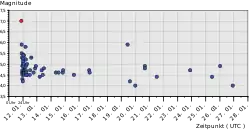 La loi d'Omori décrit la décroissance du nombre de répliques au cours du temps.