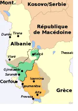 Pendant la première guerre balkanique, le royaume de Grèce reconquiert l’Épire, jusque-là sous domination ottomane. Mais les grandes puissances européennes (et surtout l’Italie et l’Autriche-Hongrie) lui refusent la possession de la partie Nord du territoire, qui est confiée à la toute nouvelle principauté d’Albanie.