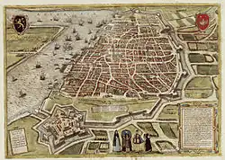 Pour se mettre à l'abri des troupes ennemies, le siège des États généraux fut transféré à Middelbourg en 1583. Sur les conseils de Guillaume d'Orange on désigna, le , Philippe de Marnix de Sainte-Aldegonde comme bourgmestre extérieur (ou forain), en le chargeant de la défense de la ville qui, inévitablement, serait attaquée à mesure que le gouverneur Alexandre Farnèse s'avançait en Flandre et en Brabant[6].