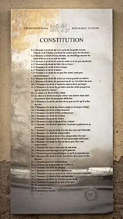 - ↑ (en-US) « UŽ REPUBLIC | UŽUPIS ART INCUBATOR », sur www.umi.lt (consulté le )