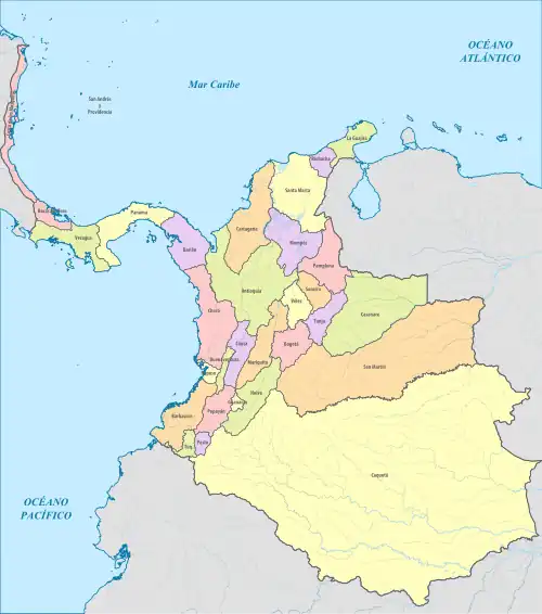 - ↑ (es) Aguilera Peña, Mario, « División política-administrativa de Colombia », Banco de la República,