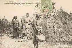 À l'occasion d'un voyage en 1904, le photographe François-Edmond Fortier consacre plusieurs cartes postales au Dieguem, dont deux intitulées « Cérères du Dieguem – très farouches », l'une sous-titrée « L'interprète du photographe leur présente pour les empêcher de fuir [des] feuilles de tabac dont ils sont très amateurs[21] », une autre « L'interprète du photographe a réussi à retenir deux femmes qui voulaient s'enfuir à son approche[22] ».