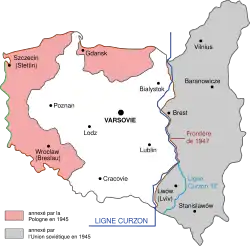 Le conflit entraîne cependant un gain territorial : à l'issue de longues discussions des Alliés sur la question polonaise, la conférence de Potsdam décide finalement le rattachement à la Pologne de tous les territoires allemands situés à l'est de la ligne Oder-Neisse[11].