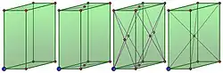 Le seul groupe orthogonal ayant une représentation irréductible de dimension 3 est isomorphe au groupe du cube S4 × C2. Il s'obtient avec trois types de réseau, tous sous-réseaux de ℤ3, ces sous réseaux sont engendrés respectivement par (1, 0, 0), (1, 1, 0) et (1, 1, 1):