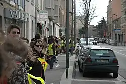Le , plusieurs milliers de personnes forment une chaîne humaine pour réclamer l'arrêt du nucléaire civil et militaire en France, deux ans après l'accident de Fukushima[50].