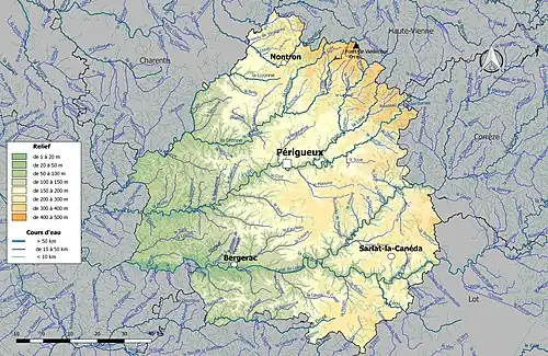 | Principaux cours d'eau | l'Auvézère, le Bandiat, la Dordogne, la Dronne, l'Isle, la Vézère |