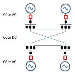 - ↑ Les capacités n'influençant que le régime transitoire. De plus dans un convertisseurs VSC multi-niveaux les IGBT déconnectent les capacités de la ligne, cf page 57 de la brochure CIGRÉ 533