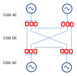 - ↑ Côté AC pour les VSC à demi-pont en H, côté DC pour ceux en pont en H