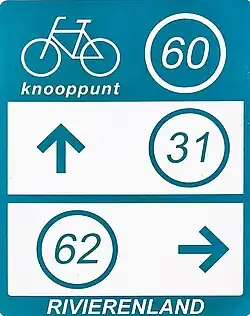 Aux Pays-Bas, des numéros à un et deux chiffres sont utilisés. Les nœuds portant le même numéro sont placés loin les uns des autres. Des panneaux nomment également la section du réseau et indiquent quelle autorité locale gère le réseau[4].