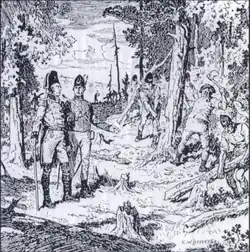 Ayant réformé les Queen's Rangers, aux-côtés de qui il a combattu durant la Guerre d'indépendance américaine, Simcoe commence à établir des routes militaires pour relier la nouvelle capitale aux autres points stratégiques de la province[41]. La première route construite est Dundas Street, du Lac Ontario à Dundas, jusqu'à l'embranchement de la Thames River dans l'actuelle London. Ses Rangers commencent la construction le 10 septembre 1793[42]. Entre le 25 septembre et le 14 octobre, Simcoe voyage avec des guides autochtones jusqu'à Penetanguishene et en revient. Suivant le conseil d'un Ojibwé nommé Old Sail, le voyage de retour s'effectue en suivant la branche est de la rivière Holland, puis, vers le sud jusqu'à Toronto (connue comme York entre 1793 et 1834). Ce trajet deviendra la route de Yonge Street[43].