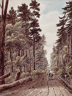 Plus tard, d'autres routes sont construites. Parmi-celles-ci, une route débutant à la rivière Don, où Queen Street la traverse actuellement, et se dirigeant vers l'est[44],[45]. La route est construite assez large et avec des inclinaisons graduelles afin de permettre le passage des carrioles. Des segments de ce tracé ont été incorporés à la Route 2 dans la région de Scarborough[46].