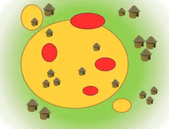 - Une zone de transition (également appelée zone de coopération , anglais : transition area), qui est la partie de la réserve où sont autorisées davantage d’activités, ce qui permet un développement économique et humain socio-culturellement et écologiquement durable.