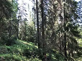 C'est une petite zone forestière naturelle, située à environ 150-254 mètres au-dessus du niveau de la mer, dominée par une forêt naturelle d'épicéa commun et de pin sylvestre plus ancienne et naturellement rajeunie. On y trouve une proportion assez élevée de tremble et quelques feuillus sous forme d' érable plane, de chêne, de tilleul, de noisetier et d'aulne noir . Plusieurs espèces inscrites sur la liste rouge ont été trouvées et la zone a le potentiel pour plusieurs espèces exigeantes, notamment des insectes, des pics et des oiseaux nichant dans des trous[2].
