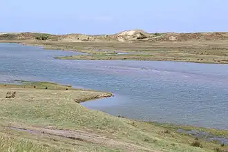 Derrière la rangée de dunes se trouve une zone schorre, celle-ci est reliée à la mer via le chenal du Zwin. De vastes espaces sont couverts de salicornes et lavande marine, celle-ci en particulier, est connue localement sous le nom de « fleur des marais », colore une grande partie de la zone en violet pendant la période de floraison. De plus, d'autres plantes salifères y poussent, comme les pépinières de plage, les marais salants et à marée haute, les bettes maritimes. Le coquelicot à cornes jaune se trouve le long de la digue. Le chevalier gambette, l'avocatette et l'huîtrier se reproduisent dans la région et l'aigrette garzette y est également présente.