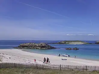 Iles et îlots correspondent à l'affleurement d'un granite clair, à mica blanc, ici et là recouvert de dépôts sableux dunaires plus ou moins enrichis en calcaire, en raison de la présence de nombreux débris d'une algue rouge, le maërl, ou lithothame, formant d'importants bancs sous-marins, à proximité[3].