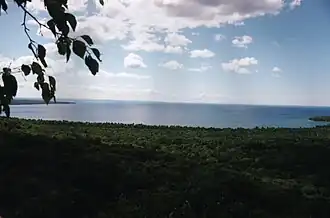 Vue des îles Sandy du belvédère du Parc provincial Pancake Bay (en).
