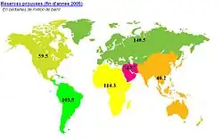 Les réserves sont exprimées en milliards de barils (Gb). (Ne pas tenir compte de l'indication erronée "En centaines de millions", qui apparaît en haut et à gauche)