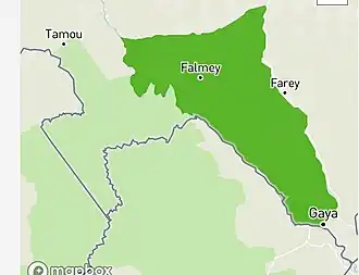 Elle est limitée à l’ouest et au sud-ouest par le Parc National du W (département de Say) et la République Populaire du Bénin ; au nord, elle couvre l’extrême sud des départements de Kollo (Région de Tillabéry) et de Boboye (Région de Dosso) et à l’est, les départements de Dosso et de Gaya (Région de Dosso)[2].