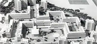 À la toute fin des années 1960, le projet initial vise à apporter aux habitants de l’unité résidentielle les éléments nécessaires à leur bien-être et à leur détente.