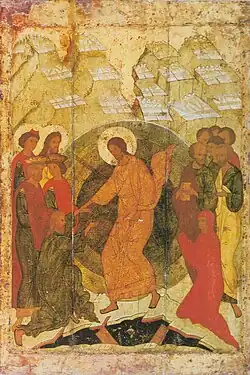 La Résurrection de Jésus, icône russe, fin du XVe siècle, galerie Tretiakov.