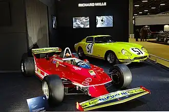 Le stand du fabricant de montres Richard Mille présente une exposition de Ferrari allant de la GT à la Formule 1.