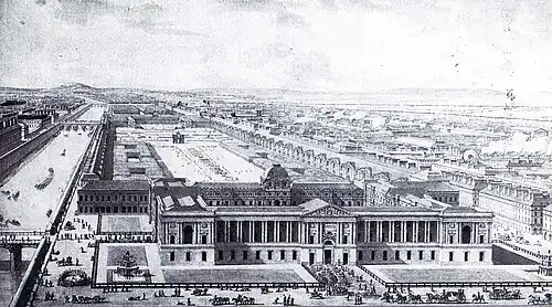 Sous la révolution française, Charles de Wailly proposa un projet de réunion du Louvre et des Tuileries, le nouvel ensemble constituant le Palais National[4].