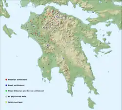 Rapidement, Manuel mit celle-ci en état de se défendre contre les attaques franques et turques et la dota d’une administration autonome. Pour favoriser le repeuplement il fit venir un grand nombre d'Albanais[N 2] en Morée pour servir comme soldats et paysans. C'est ainsi que les Arvanites (en grec Αρβανίτες), originaires d’Épire, en vinrent à se répandre dans le Péloponnèse. À l’aube du quinzième siècle, leur nombre s’élevait à environ 30 000 et beaucoup d’entre eux servaient dans une armée de quelque 20 000 hommes, vitale pour l’autonomie du despotat[3].